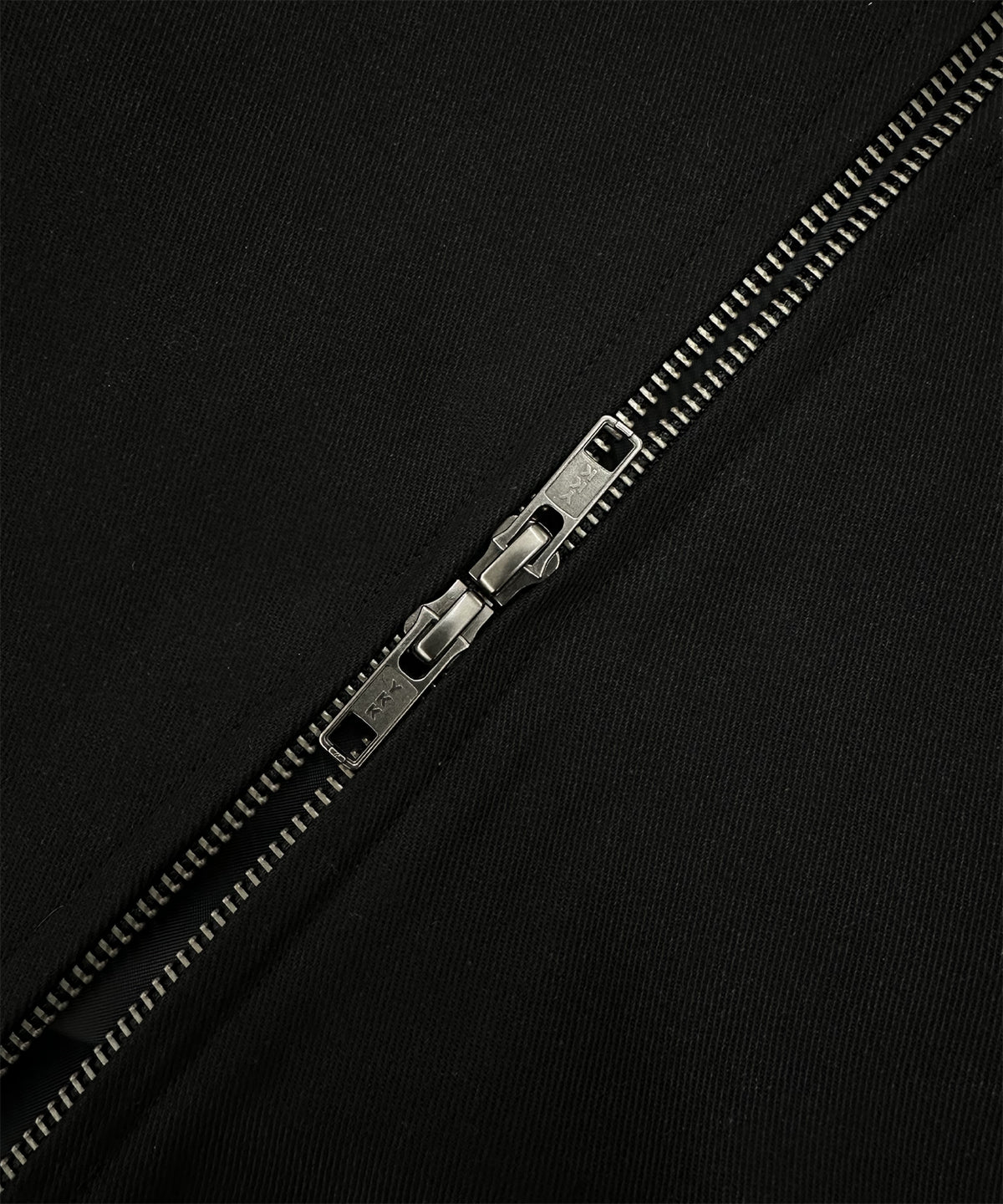 A Harrington jacket crafted with 100% cotton for a natural texture, featuring a two-way zipper and 3D stitching on the back to enhance the volume of the fit. The soft lining provides a comfortable wearing experience, while spacious inner pockets are added for practicality.